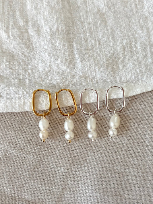 Sterling Silver Avery Pearl Earrings (Gold/Silver)